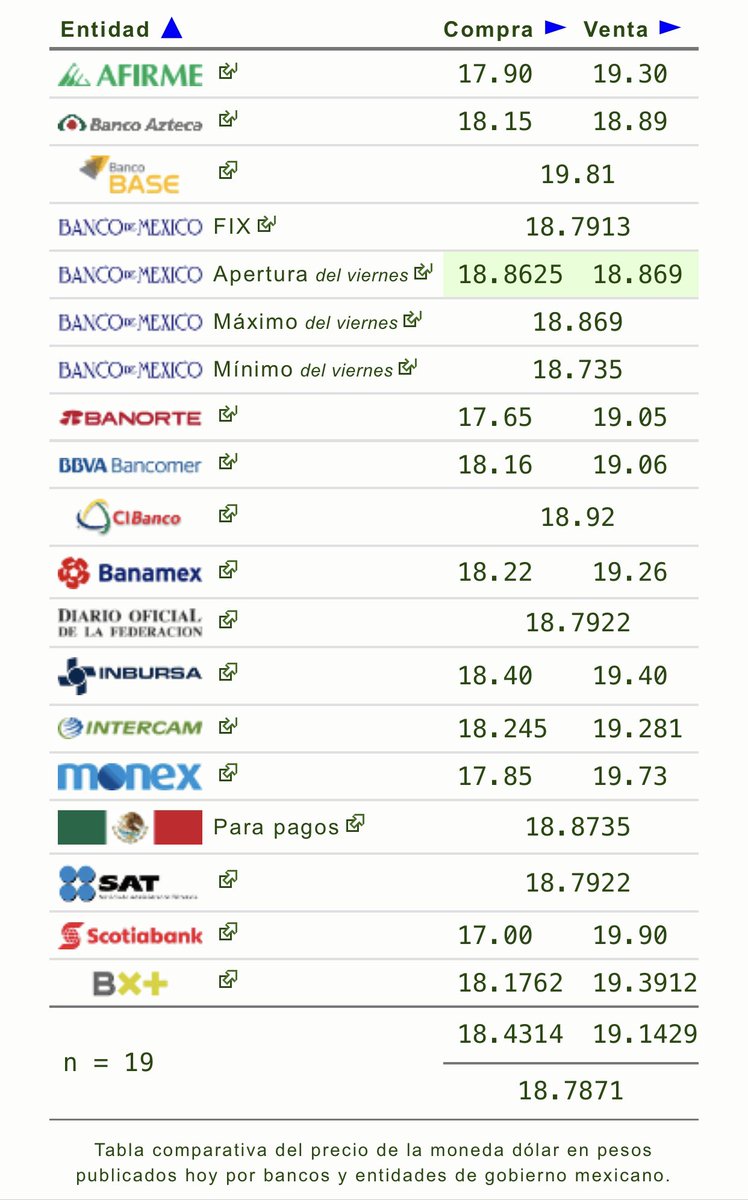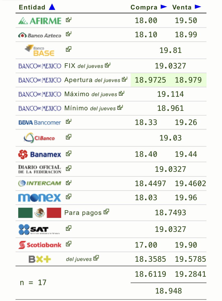 Viernes 20 de Enero. Tipo de cambio informativo promedio de distintas entidades 18.9480 () TC spot 18.9245 rangos de operación entre 18.87 y 19.06. Semana con alta volatilidad tendencia bajista hacia los 18.80’s #tipodecambio #usdmxn #pesodolar #beaveecf https://t.co/XeLvZ8euix